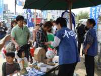 ガラポン抽選会は大賑わい。アビスパを応援している人も、普段はサッカーとはあまり縁のない人も、大勢の人たちが集まって楽しんでいた。