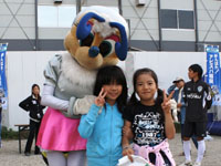 一方、千早並木広場フェスタ会場では、ガラポン抽選会のほか、キックターゲット、子どもたちがスポーツを楽しむ「ふれあいイベント」、布部、神山竜一の参加によるトークショー&サイン会が行われ、こちらも子どもたちを中心に大盛況。特に、アビーくんと、ビビーちゃんは子どもたちに大人気。時間ぎりぎりまで触れ合いを楽しんでいた。また、レプリカユニフォームに身を包んだサポーター、ボランティア、クラブ職員が、「クリーンアップ香椎・千早」と称して、香椎から千早へ続く商店街と住宅街の清掃活動を実施。2つの町の橋渡し役を果たした。