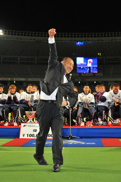 まずは、1位に輝いた写真は味の素スタジアムで開催された「優勝報告会」での1コマ。
