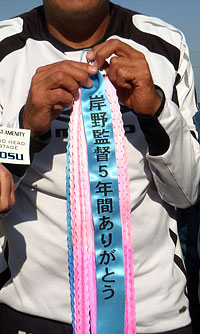 千羽鶴を手渡された岸野監督は、「勇気をもらいました。鳥栖にいた5年間は本当に幸せでした。残り2試合を、全力で戦います」と応えていた。