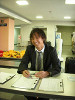 手順を習いながら、一生懸命受付をこなす武岡選手。 試合中より、真剣な表情だったような・・・