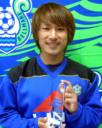 累積警告での出場停止(1試合)を除いてフルタイム出場と、19歳のルーキーながらレギュラーとしてコンスタントに活躍し、湘南のJ1昇格に大きく貢献。既に湘南のDFリーダーに成長しており、いつ日本代表に呼ばれてもおかしくないという声も多数聞かれた。将来が楽しみな選手ということで今回の受賞となりました。