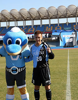 「みなさん、こんにちは、稲本です。今回フロンターレと契約できたことを本当にうれしく思っていますし、久しぶりの日本でのプレーを楽しみにしています。