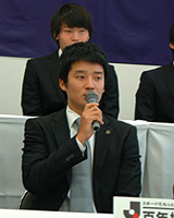 岡崎和也選手:「去年からJ2に入って、これからというチーム。若さを存分に生かして、チームとしては上に上がっていくだけ、そこで自分が出来ることがうれしいです。地域の人、サポーターの人は温かく、いい印象なので、一緒になってがんばりたいと思います」