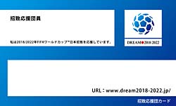 2018/2022年FIFAワールドカップTM日本招致委員会は、国内における招致活動を広めていくことを目的に、「招致応援団」を広く募集してまいります。ワールドカップ日本招致を応援してくださる方には、「招致応援団員」として、お名前とメッセージの入ったオリジナル「招致応援団カード」を発行します。