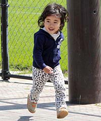 そして、写真は私の小さなお友達。名前は伊織(いおり)くん。今年幼稚園に入園したばかりの3歳の男の子だ。まだ言葉もはっきりせず、よちよち歩きの頃から、お母さんに連れられて雁の巣球技場に毎日のように通っている筋金入りの常連サポーター。もちろんホームゲームは皆勤。アウェイゲームにもサポートに行くこともある。ファッションにもこだわりを持ち(?)、雁の巣球技場にやってくるときは必ずお気に入りのものを身に付けて登場。去年までのお気に入りは、大好きな中島崇典と鈴木惇のサインの入った黄色い靴。この日は一番のお気に入りのパンツを履いてやって来た。