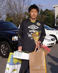 さすがは柏が誇る韓流スター! 17日の練習終了後、ファンサービスゾーンで待ち構えていた多くの女性サポーターからプレゼント攻勢を受けていました。花束やケーキはもちろん、プレゼントの中には2足のスニーカーも。たくさんのプレゼントを両手に抱えるパク選手をクラブハウスの前で掴まえ、「誕生日の思い出」を聞いてみたところ、サッカーにまつわる誕生日の思い出は、「あまりない」という返答…。