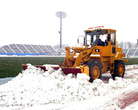 17日朝から15cmを超える積雪季節外れの大雪となった山形vs横浜FM戦より。クラブスタッフやユースチームの選手、サポーター有志など人海戦術によってピッチ外にかき出された雪を重機が取り除いている写真が1位でした。(写真はこちら)
