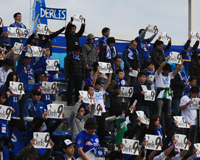 試合前にデルリス選手を悼んで黙祷。サポーターも有志が用意したメッセージを掲げた。