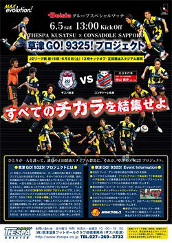 今ゲームは、JFL時代からユニフォームスポンサーとして草津を支援しているベイシアグループ(B)のスペシャルマッチ。去年9月の同マッチではクラブ記録となる8276人が詰めかけた中で甲府を撃破、スタジアムは最高の盛り上がりをみせた。今試合では去年の記録を塗り替えて9325人以上、そして「満員御礼」を目指す。草津は、熱狂のスタジアムで勝利を上げて最下位脱出を試みる。このシナリオのカギを握るのは、A・K・Bだ。