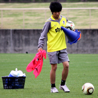 練習などで実際の仕事ぶりを見ると、加入当初と比べて徐々に勝手も分かって来た様子。毎朝6時半に起きて8時には練習場に到着。練習の間も水の用意や道具の準備といったサポートを行ない、練習が終わればウエアの洗濯の合間に昼食をとり、乾燥させて整理し終えるのが17時前後。それから翌日の準備、試合の前日ならユニホームの準備など仕事はみっちりで、帰宅するのは22時頃とハードな毎日だ。だがこの仕事に就く前からロアッソ熊本が好きで試合を見にきていたというだけあって、チームの一員となった喜びを感じながら仕事に取り組んでいる。