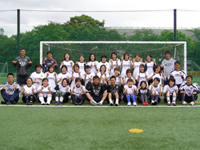 記念撮影をするサッカースクール参加者とコーチ陣。