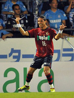 続いてご紹介するのは10位にランクインした鹿島・マルキーニョス選手の決勝ゴール直後のこの1枚。前半、磐田に2点のリードを許す苦しい展開も、後半の3ゴールで鮮やかな逆転勝利。リーグ再開後3連勝とし、首位をがっちりとキープしました。リーグ戦の主導権はこのままやはり鹿島が握っていくのでしょうか!?