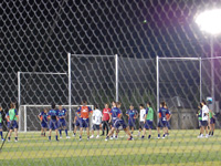 「昔は仕事の後にやっていましたね〜」と関根永悟選手。夕方、ユースの練習があったためにJFL時代以来、トップチームの練習が19時開始となったこともありましたが、『愛フィールド梅津寺』は海風が心地よく、日中の猛暑を忘れさせてくれました。