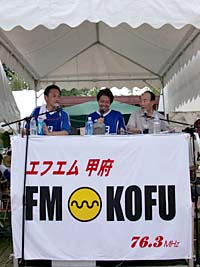 地元のエフエム甲府で実況中継されるすごさ。サッカー人気のバロメーターの一つはラジオ中継が定着するかどうかだと勝手に思っているので、エフエム甲府の入れ込みようは頼もしい。後半のゲスト解説席(中央)に座ったのは、ヴァンフォーレ甲府の公認応援歌「君は青い風」を歌う神部冬馬さん。前半は日本代表でプレーしていたので、初めて日本代表に選ばれた歌手でもある