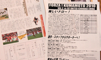 熊本県にゆかりのない人たちにも、ロアッソ熊本というクラブを知ってほしいという思いから、自作のマッチデープログラムや選手コール、チャントを掲載した紙を配る。実際、ある会場では「とても雰囲気が良くて応援が楽しかったから、熊本のゴール裏が好きになった」との言葉をもらったそう。ちなみにその方は千葉県出身にも関わらず、この試合をきっかけに熊本のホームゲームにも数回足を運んでいるらしく、ちょっと大げさだが、サッカーを、そしてロアッソ熊本を通して、熊本県のファンを増やしたとも言える。