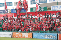 だがサポーターがゴール裏に集うのは、ホームだけではない。九州、四国の西日本はもとより、全てのアウェイゲームで、たとえ少数だろうと熱いサポーターが後押しする。もちろん、熊本からバスツアーが出たり、各自が自家用車等で出向いたりとその経路は様々だが、先日の柏戦や千葉戦でも多くのサポーターが訪れたのは、関東在住の県出身者等が中心となり、アウェイでの観戦を呼びかけていることの効果も決して小さくない。