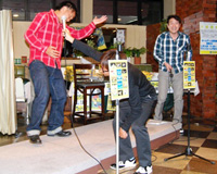 第2部ではラジオの公開録音が行われました。MCは毎週火曜日(20:55〜21:00)にRADIO BERRY(FM栃木)にて放送されているSC−FM『ヨネラジ』のパーソナリティー米山篤志選手。普段は2週間分を1時間半かけて収録するのですが、この日の持ち時間は25分ということで、「勝手に来た(米山選手)」入江利和選手をゲストに迎えて公開収録はスタート。会場のオーディエンスからの質問に、2人が絶妙な掛け合いで答え、会場は爆笑の渦に。テンションが上がった入江選手は怖いもの知らず。国民的アイドルグループの歌をダンス付きで披露し失笑を買い、「これ、放送事故だろ」と米山選手から突っ込まれていました。そんな事故がありながらも、収録は思った以上にスムーズに終了。栃木県にお住まいの方、ぜひ来週放送のSC−FM『ヨネラジ』をお聞きください。入江選手の振り付きのダンスが見られないのが残念ですが、抱腹絶倒間違いなしです。