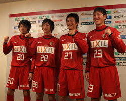 「背番号をつけた意味ですか。まず確認なのですが、土居聖真は28、柴崎岳は20、梅鉢貴秀は27、昌子源は23ということで、明確な理由はないんですけど、これというイメージはございます。まず、18歳の4名に一桁の背番号というのはスタートからはキツイだろうな、というのが一つ。もう一つは、今年はアントラーズの20周年の記念になるということで、頭に2をつけた二桁の20代にしよう、ということが二つめ。もう一つは将来の我々の希望を込めて、土居であれば2を取った8番、柴崎であれば10番、梅鉢は7番、そして昌子は3番の背番号を将来目指していって欲しい。そういう思いで背番号を付けました」