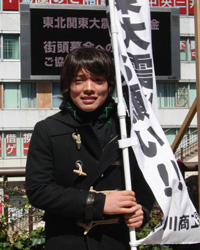 「僕たちが元気を出さなければ暗くなってしまう一方だと思ったので、誠一杯声を張り上げて募金活動をやらせてもらいました。少しでも復旧のためになれば良いなぁと思っています。