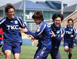 東日本大震災以来、本格的に再始動したのは3月25日。4月23日からのリーグ戦再開が発表され、ターゲットは第8節・カターレ富山戦(@富山)に定まった。再開初戦での必勝を胸に、10日ぶりに行ったトレーニングでは、チームメイトとの久々の再会に笑顔が見られた。