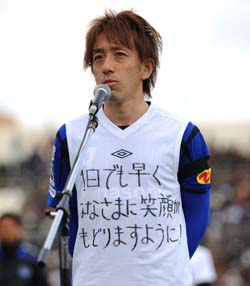 そうした決意のもと、G大阪がAFCチャンピオンズリーグ・天津泰達戦を戦うためアウェイの地に乗り込んだのは震災から2日後のこと。その試合を含めてG大阪は中断期間中、ACLを3試合と「より本番に近い意識でゲーム勘を養うため(西野監督)」の練習試合を週1〜2回のペースで戦ってきた。3月27日に行われた神戸とのチャリティマッチでは、全選手による募金活動やチャリティーグッズの販売を実施。それ以外でもチャリティーオークションやホームタウンでの募金活動など、「自分たちにできること」を積極的に行い、4月11日にはそれらの活動を通して集まった35,917,867円を日本赤十字社へ寄付した。