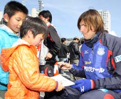 「この度の東日本大震災におきまして、犠牲になった方々のご冥福を謹んでお祈りいたします。私の故郷・宮城県釜石市も被害が大きく、地元のためにも何かしたいという焦燥感に駆られ中断期間の間にクラブや個人として被災地支援活動を行ってきました。被災地が1日も早く復興することを心から願うとともに今後も自分たちにできることを考えながら協力をしていきたいと思います。