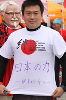 「復興支援Tシャツを製作し、スタジアムグルメ全店舗で着用して復興へのメッセージを送ろう」「Tシャツ代金の一部を、ロアッソ熊本を通じて義援金として日本赤十字社に義援金として寄付しよう」――その思いつきを後押ししたのが、3月29日に行われたチャリティーマッチ・日本代表 vs Jリーグ TEAM AS ONE(Jリーグ選抜)での三浦知良選手(横浜FC)のゴールだった。