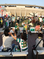 試合前は多くのファン・サポーターでにぎわう長良川競技場のサンサンデッキ