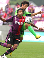 6月5日の京都戦で2−1の勝利を収め、4試合目にしてJ2昇格後のホーム初勝利を収めた鳥取だが、同じ日、もう一つの「初」があった。DF森英次郎が後半に交代で出場し、J2デビューを飾ったのだ。