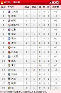 HOT6期間中に獲得した勝点による順位表を掲載。暑い夏に輝くチームはどこだ!?