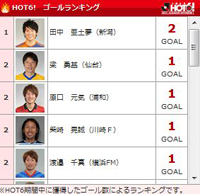 (1)ゴールランキング:HOT6期間中にのゴールランキングです。