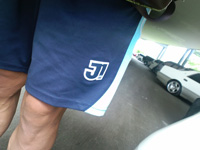 そのイニョンが履いていたハーフパンツの裾には、ブランド名とおぼしきロゴが縫い付けられていたのですが、なんと「J1」と書かれています