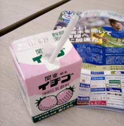 「へ〜、これが有名なイチゴ牛乳ですか。おいしそうですね。ではさっそく失礼して。ゴクゴクチューチューゴクゴクゴク。ぷはー。おいしゅうございましたー」