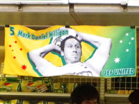 ロングスローをする際、汗や雨などの水分がボールについていると、投げる際に手が滑って遠くへ投げられません。そのため、千葉のホームゲームのボールパーソンは千葉のアカデミーの選手がやることがほとんどなのですが、当初はボールパーソンが自分の着ているシャツなどでボールを拭いたり、ミリガン選手が自分のユニフォームでボールや自分の手を拭いたりしていました。すると、「これではよくない」ということで、その後はタッチラインのそばにタオルを置いたり、ボールパーソンがタオルを持ったりして、ミリガン選手のロングスローをバックアップ。タオルはロングスローの必需品ということで、千葉サポーターの間では「ミルジー(ミリガン選手のニックネーム)がデザインされたタオルを発売すればいいのに」という声があがっていたようでした。それがついに、先日の千葉のホームゲーム(7月23日のJ2リーグ戦第22節・札幌戦)の日に、千葉のオフィシャルグッズとして発売されたのです。