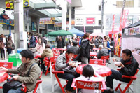 通りに面して出張出店したスタジアムグルメブースも終始大賑わい