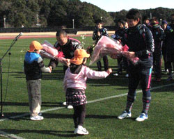 富吉保育園の園児からの激励で福岡の宮崎キャンプがスタート