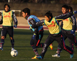 初日のトレーニングが始まったのは午前9:30。最高気温6度という宮崎らしからぬ気温と、強風が吹き付ける中でのスタートとなったが、選手たちは気合十分。「戦いは既に17日から始まっている。福岡でいいキャンプをして、日南でのミニキャンプで結束を高めた。このキャンプでは、更に戦術を高め、フィジカル的にも、メンタル的にも、タフなシーズンを乗り越えられる力をつけよう」という前田監督の檄を受けて、精力的にボールを追う。その動きは、この時期としては十分すぎるもの。シーズンオフの自主トレで、雁の巣球技場でのトレーニングで、いい準備が出来たことが窺える。