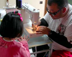 (写真2)業務用に近いミシンでぐいぐいと縫いあげる