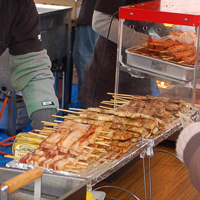 元来食いしん坊の筆者にとっても、なんとも魅惑的な品々が並びます。ジュージューと肉汁が焼ける音や、どこからともなく漂ってくるスパイシーな香りに、腹のムシを必死に抑えながら、まずは取材、取材。