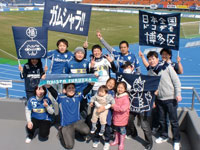 遠く離れた福岡を思いながらチームをサポートする関東サポーターの面々。キーワードは福岡だ。