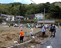 【写真10】5月5日、これまでのユニホーム姿とは変わり、この日は作業着姿で集合。まずは昨日のお祭りの片付けから始めました。