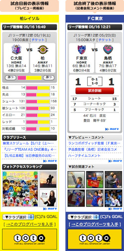 あなたのブログに貼り付けるだけで、試合に関する「記事」「データ」「写真」など、J's GOALの各種試合情報を表示します!