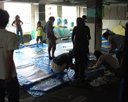 平塚駅にほど近い立体駐車場の上階が竹飾りの制作に解放される。