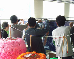 一つひとつ手作りの花飾り。厳かに出番を待っています。
