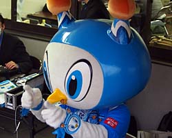 三ツ沢で、いつも変わらずにファン・サポーターを出迎えてくれるのが、横浜FCのマスコットキャラクターである「フリ丸」。頭の部分は少し大きいのですが、自由度の大きいキャラクターだけに、様々なポーズで楽しませてくれています。
