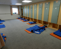 出港は17時半だが、40分前にはフェリー乗り場で乗船手続きを済ませてほしいとのことで、練習中もいつも以上に時計が気かかる。16時すぎにフェリー乗り場に到着でき一安心。チケットは2等自由席にした。ほかにも個室やグループで利用しやすい部屋などもあるので、旅の目的に合わせて各フェリー会社のホームページを参考にしてほしい。