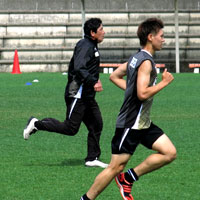 チームが今年始動した1月17日から、一貫して変わらない光景がある。それは、選手たちに混じって吉田靖監督も走ることだ。