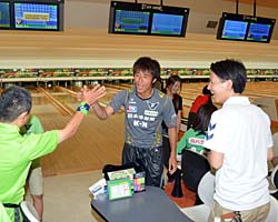 なかなかストライクが出なかった林堂も、会心の一投に満面の笑み