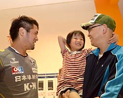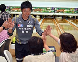 前日にホームで松本を下し、今季初の連勝を飾ったばかりとあって、一投ごとに歓声が沸き、大いに盛り上がった。いつもと少し違っても、やっぱりさすがと思わせる「ボウル扱い」。終了後、選手たちが気軽に記念撮影やサインに応じるなど、ファン・サポーターとの交流がいっそう深まったイベントとなった。